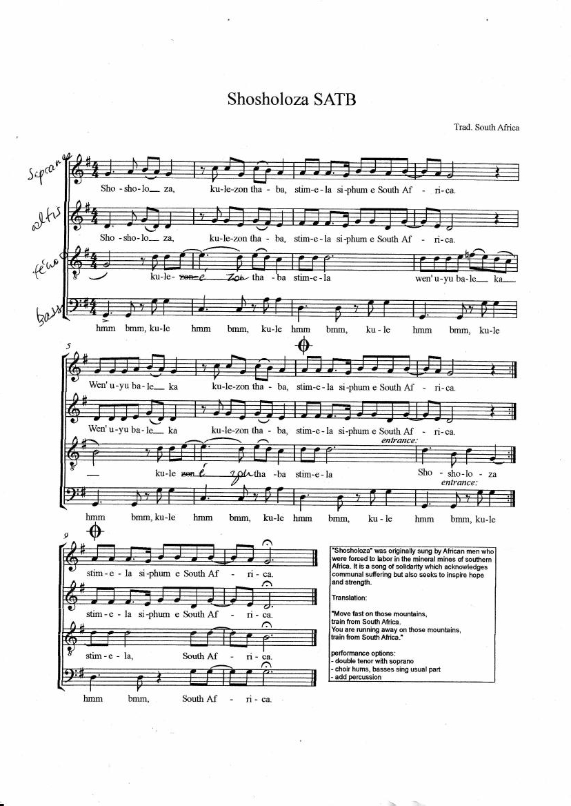Shosholoza < retour au sommaire Chant des mineurs sud-africains. ParolesTélécharger PartitionTélécharger